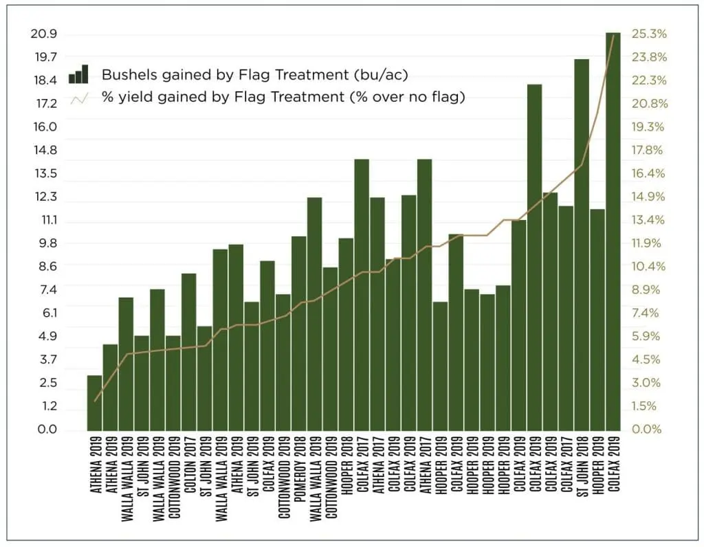 10.3 bu/ac Average Yield Increase with Flag Leaf Fungicides + Foliar Nutrition