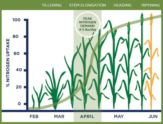 Cool spring soils slow the mineralization of nitrogen in the organic soil matter, delaying the soil’s free nitrogen source. Naturally occurring nitrogen is unavailable until after peak demand timing.